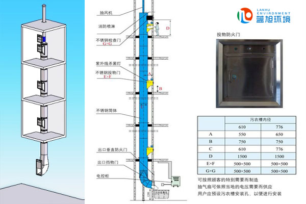 污衣槽是長(zhǎng)久、快捷、衛(wèi)生和經(jīng)濟(jì)運(yùn)送污衣到底層洗衣房的最有效設(shè)施,當(dāng)配備電鎖系統(tǒng)后防止臭味及細(xì)菌向低層擴(kuò)散,因?yàn)楫?dāng)污衣由高層滑落時(shí),下方的操作人員在開(kāi)啟污衣投物門(mén)后,外泄氣流,此氣流同時(shí)將臭味及細(xì)菌由高層傳播到低層。污衣槽是采用進(jìn)口優(yōu)質(zhì)不銹鋼加工以角形圓環(huán)接口結(jié)合,允許各層樓的槽管在高度上的尺寸和冷縮熱脹的情況。在每層樓,樓臺(tái)固定架支承,并用螺栓錨固于地臺(tái)上。污衣槽在所需的樓層提供的投物門(mén)為正鉸、雙層門(mén),門(mén)鎖也可以人手操作。