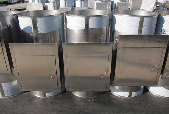 2.本系統(tǒng)具有電子顯示、電子報(bào)警、電子互鎖功能,滿足消防安全要求。不銹鋼污衣槽系統(tǒng)由槽身、投物口、污物出口、檢修口、固定臺架,消防系統(tǒng)及電控系統(tǒng)等組成。槽身分段制作, 污衣槽可采用法蘭連接方式,也可以采用插口連接方式。