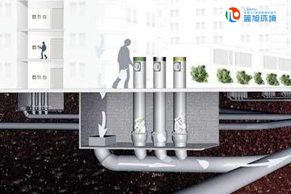 在樓內(nèi),每層樓都將設(shè)置一個垃圾投放口,緊靠著垃圾投放口,設(shè)立一條垂直的垃圾管道,底端設(shè)有垃圾排放閥和預(yù)埋于地面下的水平管道相連,通往密封的中央收集站。每天產(chǎn)生的各種垃圾,投入垃圾投放口,進(jìn)入垂直垃圾管道。當(dāng)垃圾達(dá)到一定的數(shù)量以后,中央控制臺發(fā)出開始工作的指令,垃圾站內(nèi)的抽氣裝置自動啟動,在水平管道內(nèi)產(chǎn)生負(fù)壓氣流。系統(tǒng)自動打開設(shè)置在垃圾垂直管道底部的垃圾排放閥,儲存在閥頂?shù)睦晃氲叵螺斔凸芫W(wǎng),輸送到中央收集站內(nèi),實施垃圾氣體和固體的分離處理。其中氣體部分經(jīng)過高效處理后排放,而固體垃圾則被壓縮輸送至垃圾罐體,然后運至垃圾處理廠進(jìn)行焚燒發(fā)電或者填埋處理。